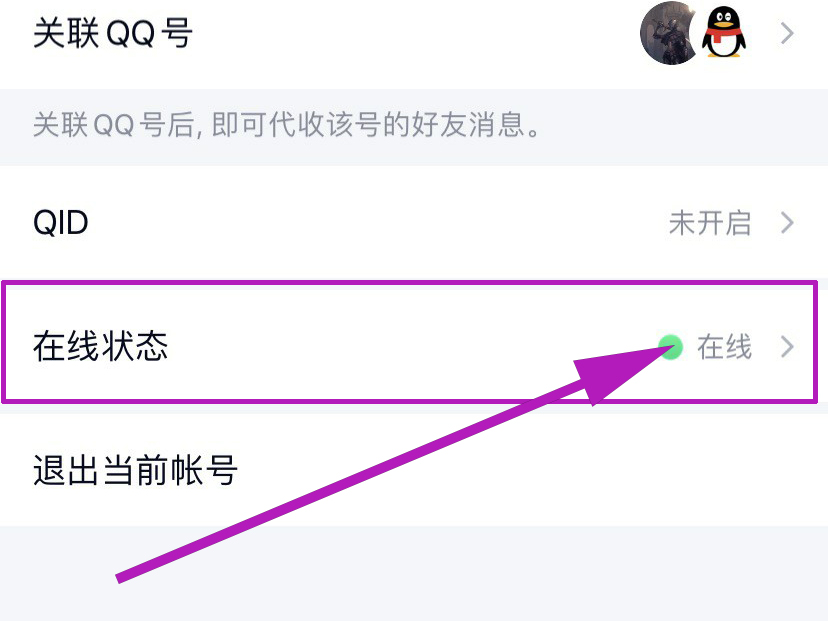 4、在账号管理页面中,找到在线状态的选项,然后点击进入。