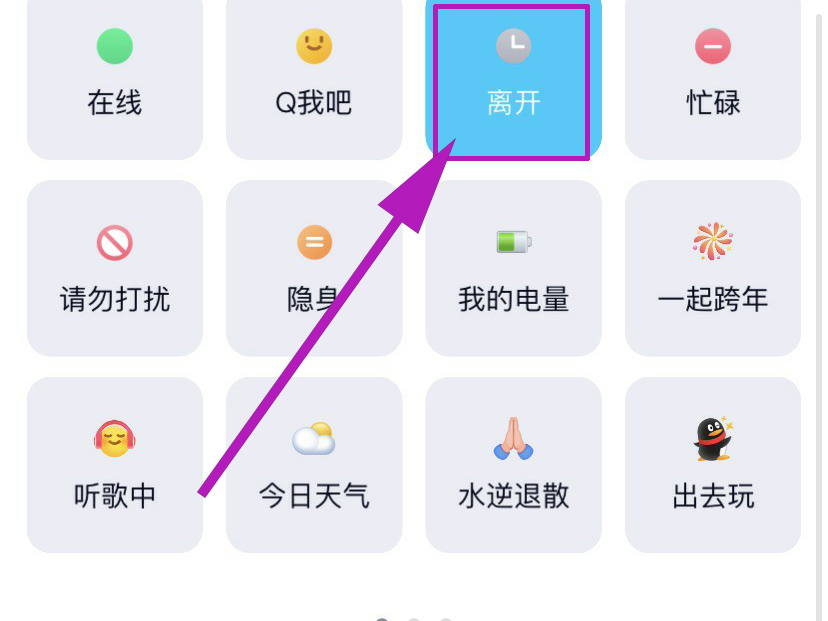 5、把在线状态设置成离开,然后正下方就会出现各种自动回复的话语,你也可以自定义回复的消息。