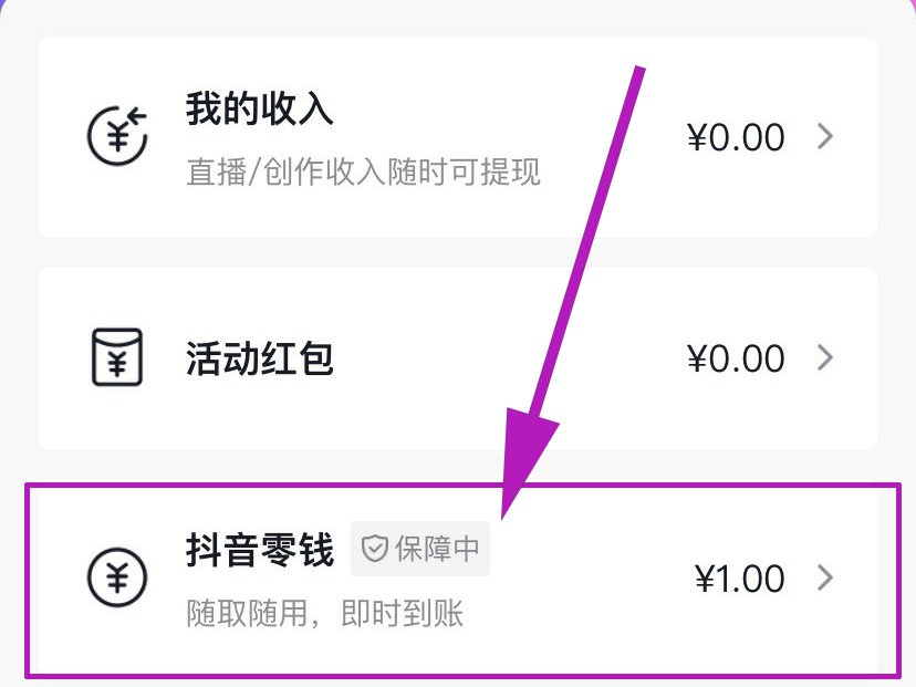 4、在我的资产页面中,找到正下方的抖音零钱选项,然后点击打开。
