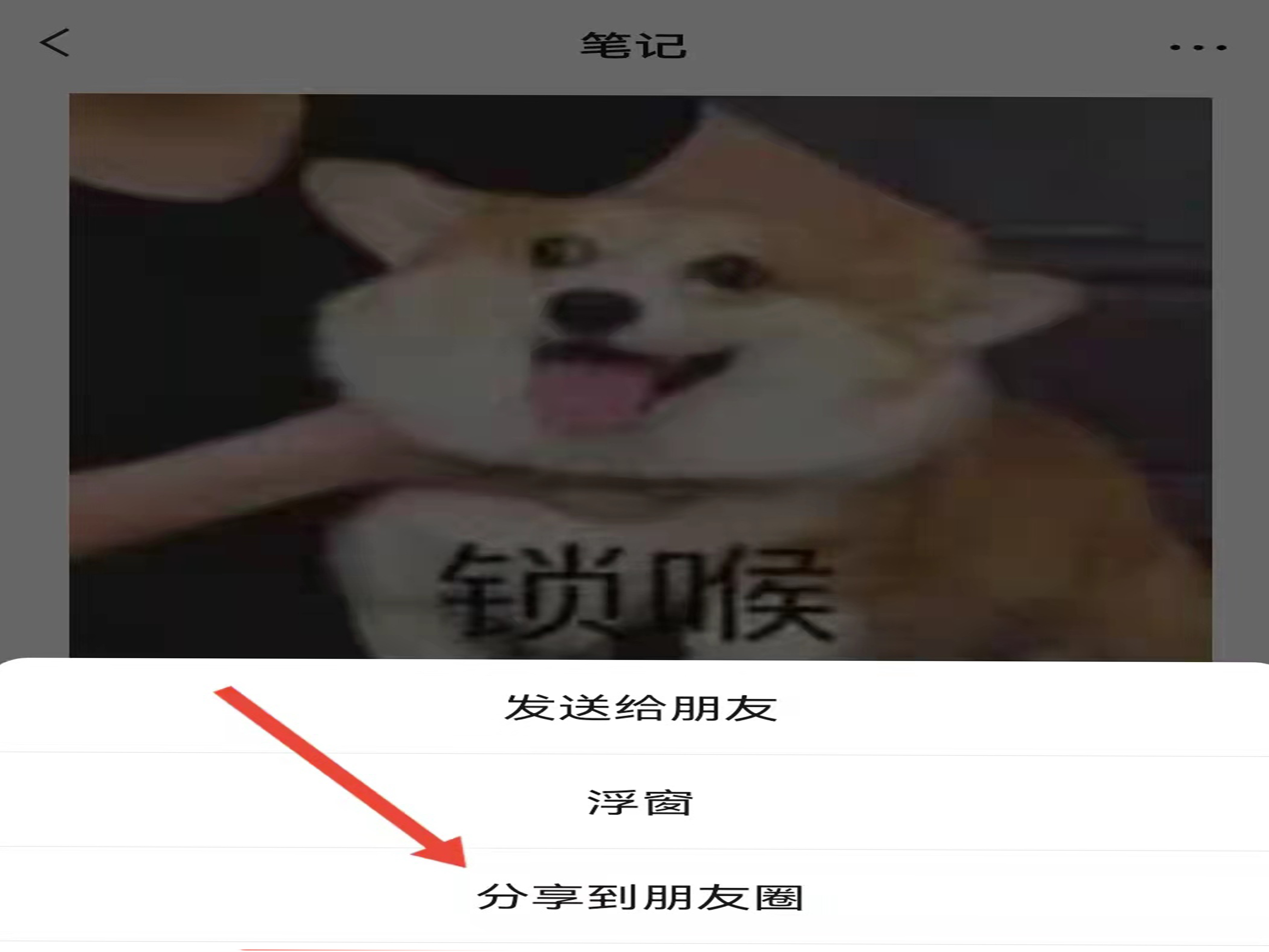 5、在笔记页面点击“三点”图标,选择“分享到朋友圈”即可。