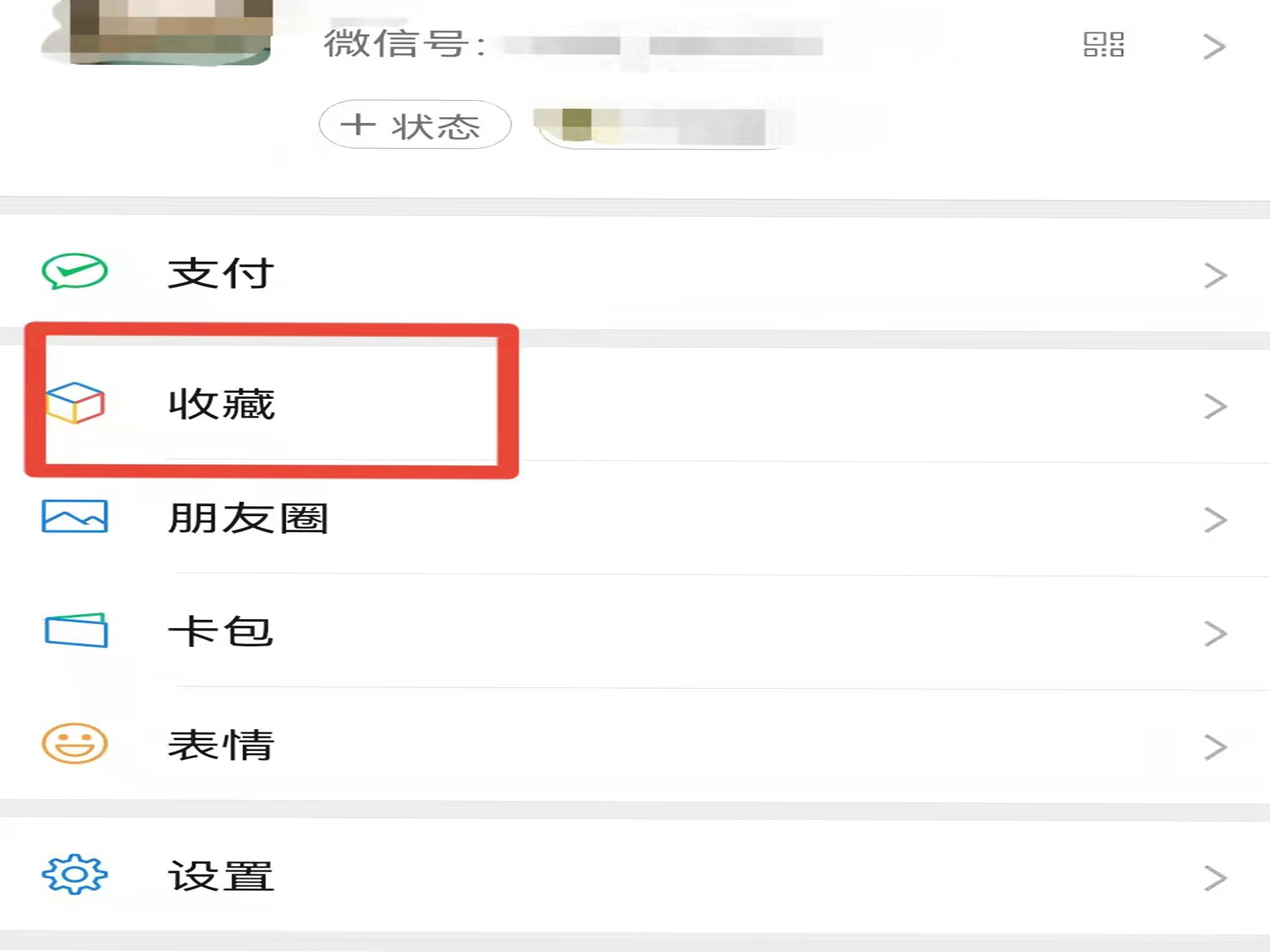 1、打开微信APP,切换到“我”的页面,点击“收藏”。