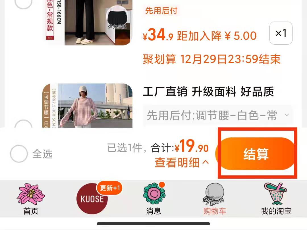 2、选择需要购买的商品,点击“结算”进入“确认订单”页面。