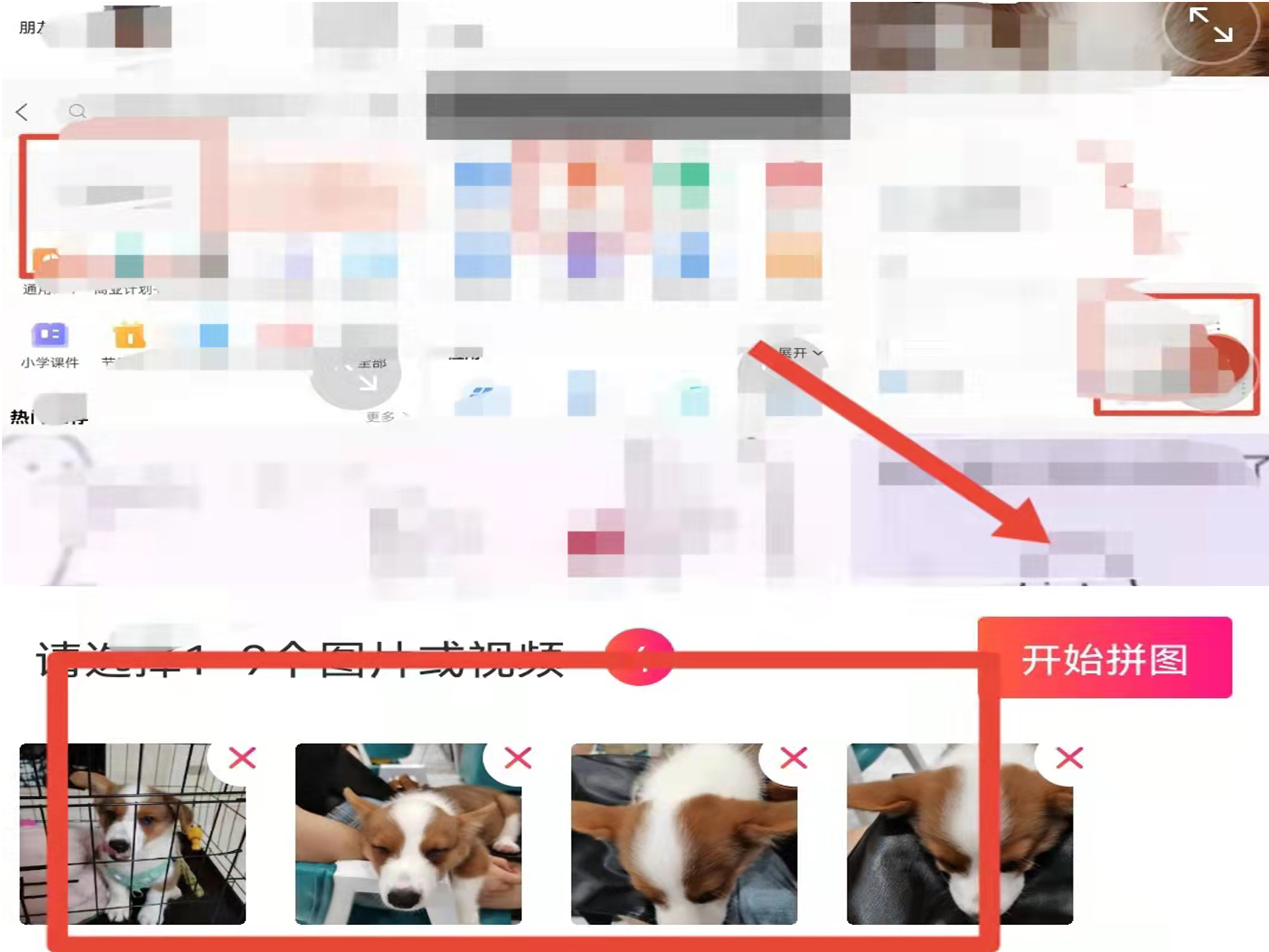 2、选择四张照片,点击右下方的“开始拼图”。