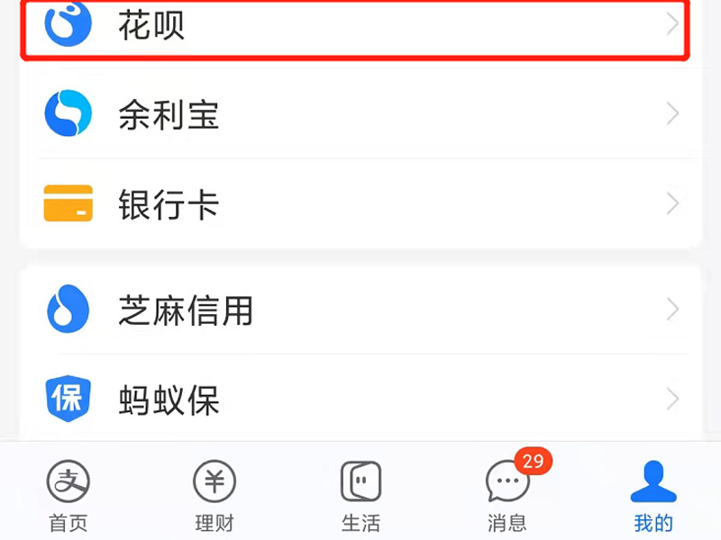 1、打开支付宝app,点击右下方的“我的”,再点击花呗。