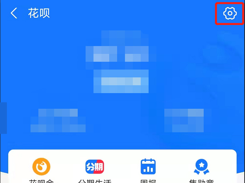 2、点击进入花呗后,点击右上角的齿轮并进入。