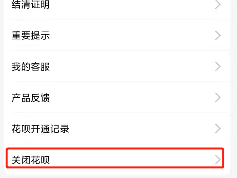3、点击进入后,往下滑找到关闭花呗并点击即可。