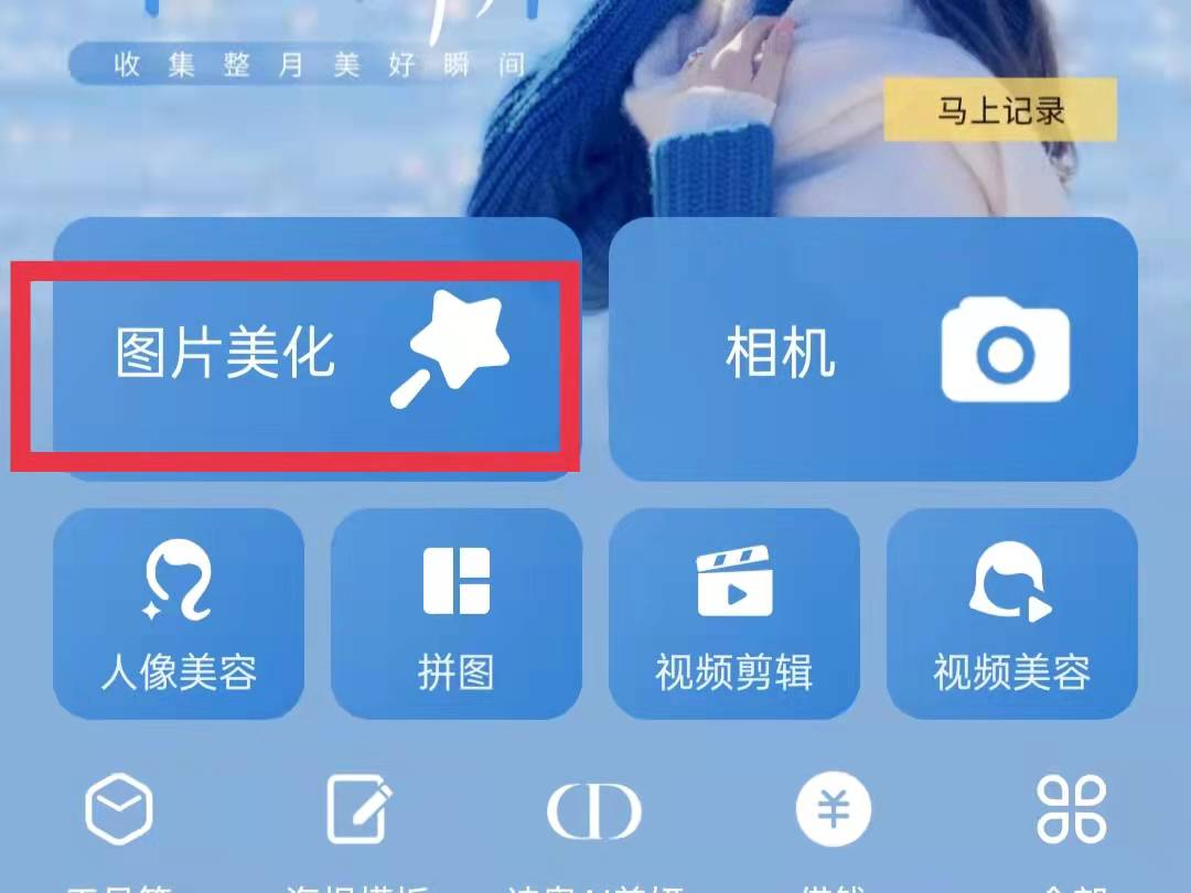 1、打开美图秀秀,点击首页的图片美化。
