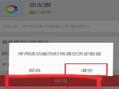 5、点击“停用”、点击“清空”即可清空朋友圈。