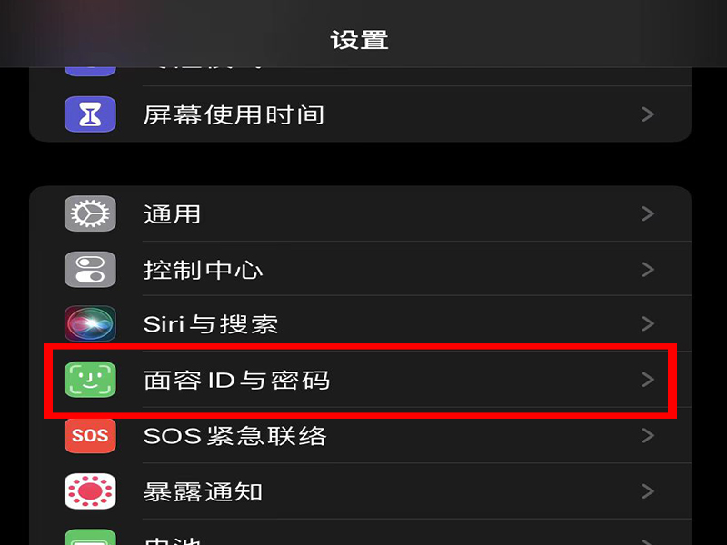 1、打开手机,进入“设置”,并在“设置”界面中找到并点击“面容ID与密码”。