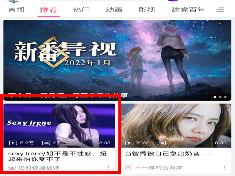 1、打开哔哩哔哩app,点击想要查看人数的视频。