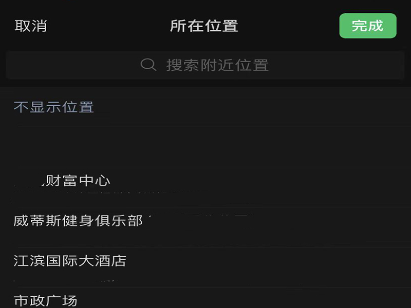 4、进入“所在位置”界面后,选择一个别的地方的位置就可以了。