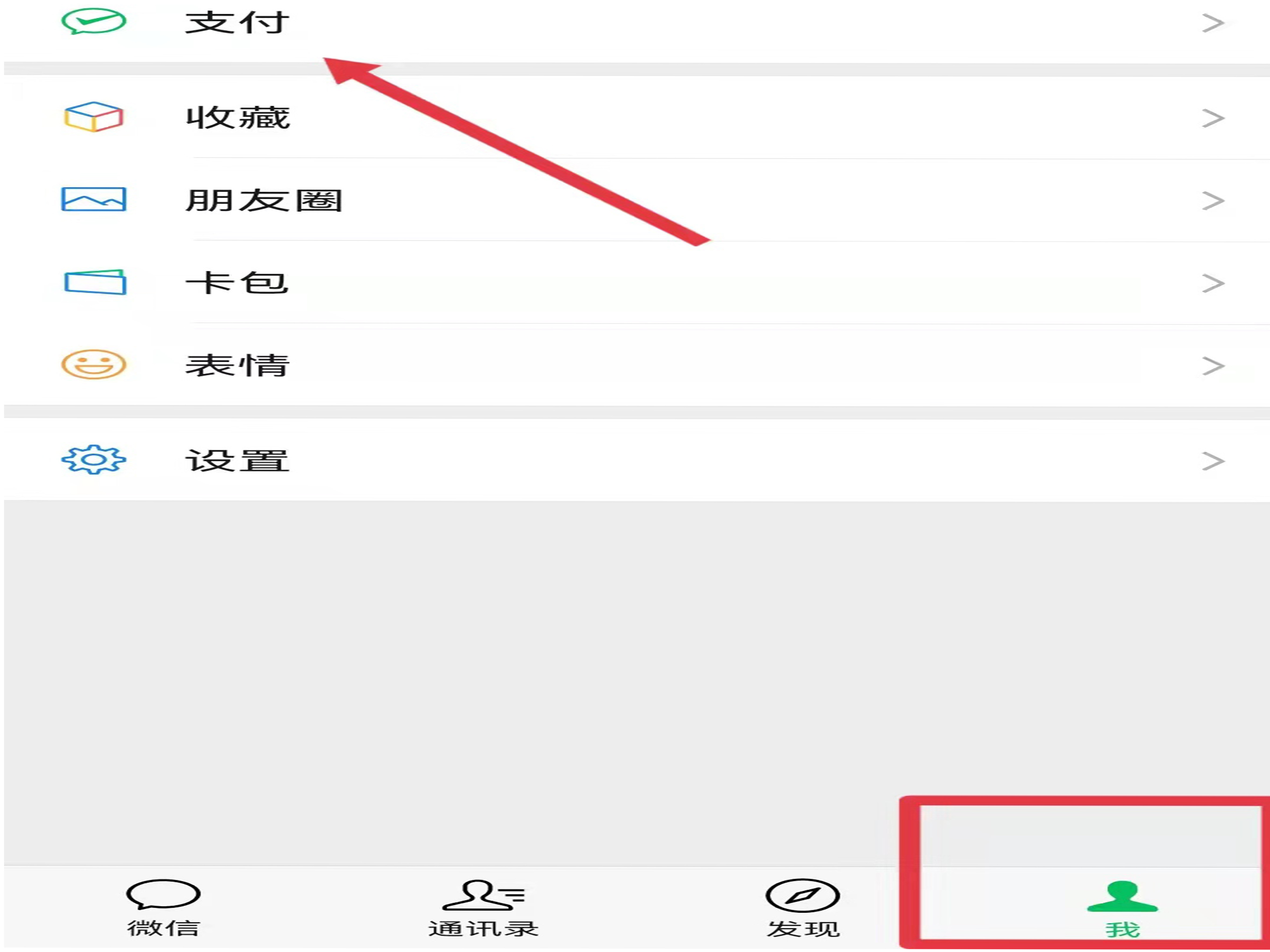 2、在“我”的页面中选择“支付”,进入支付页面。
