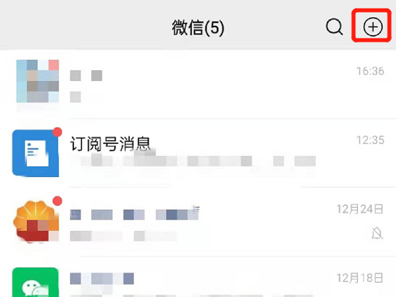 1、打开手机微信app,点击右上角加号标志。
