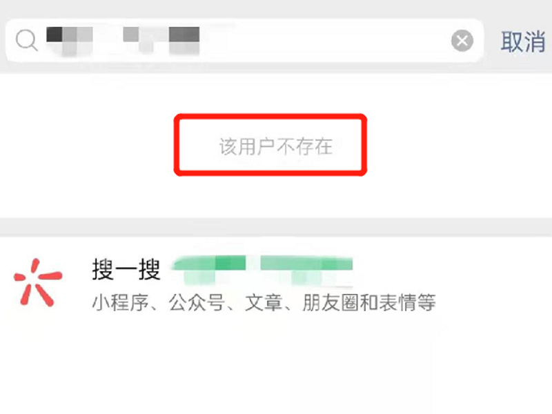 3、搜索用户微信号或者手机号,如果该用户微信已注销,会显示“该用户不存在”。