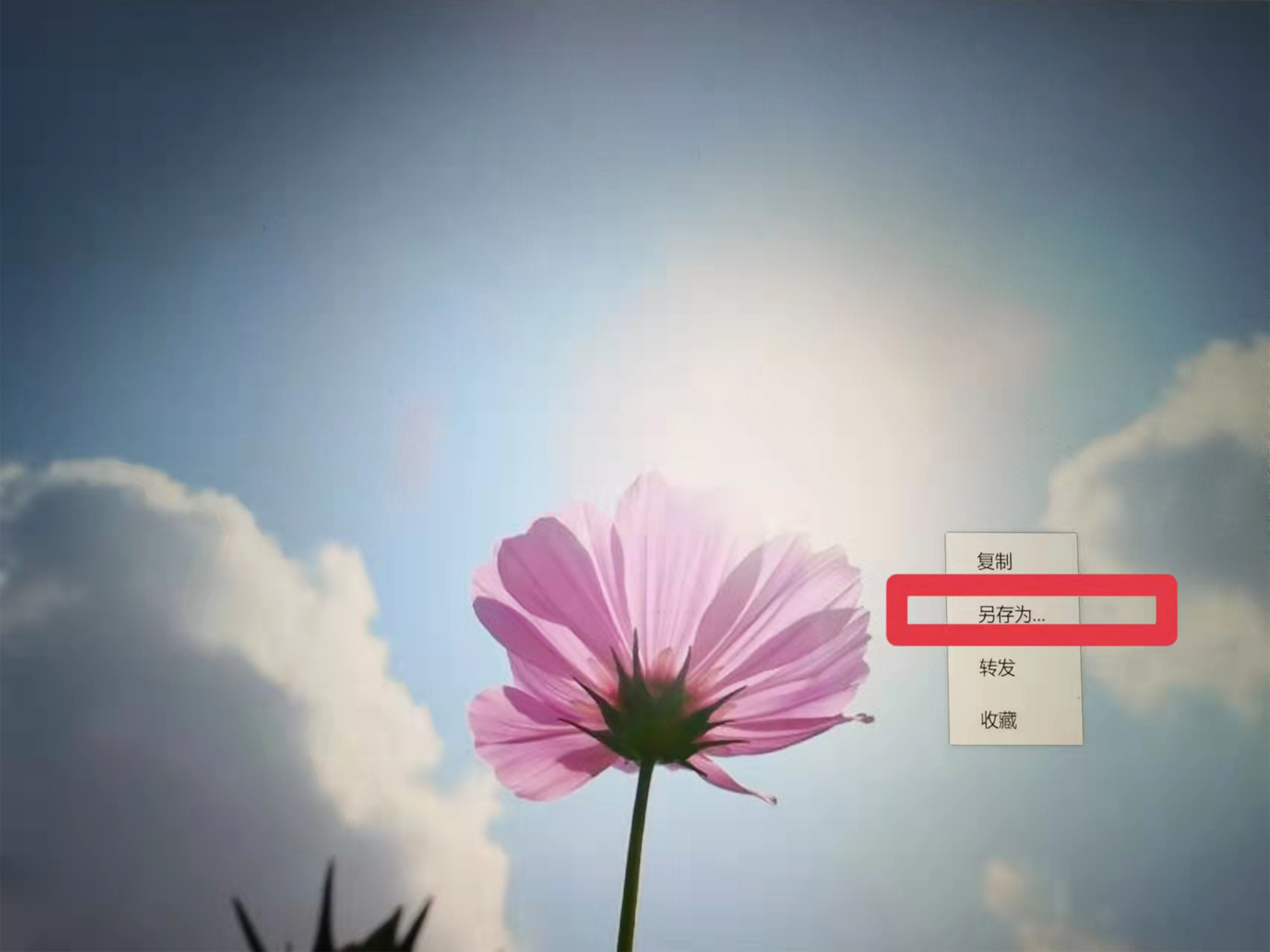 2、右击图片,在弹出的对话框中选择“另存为”选项。