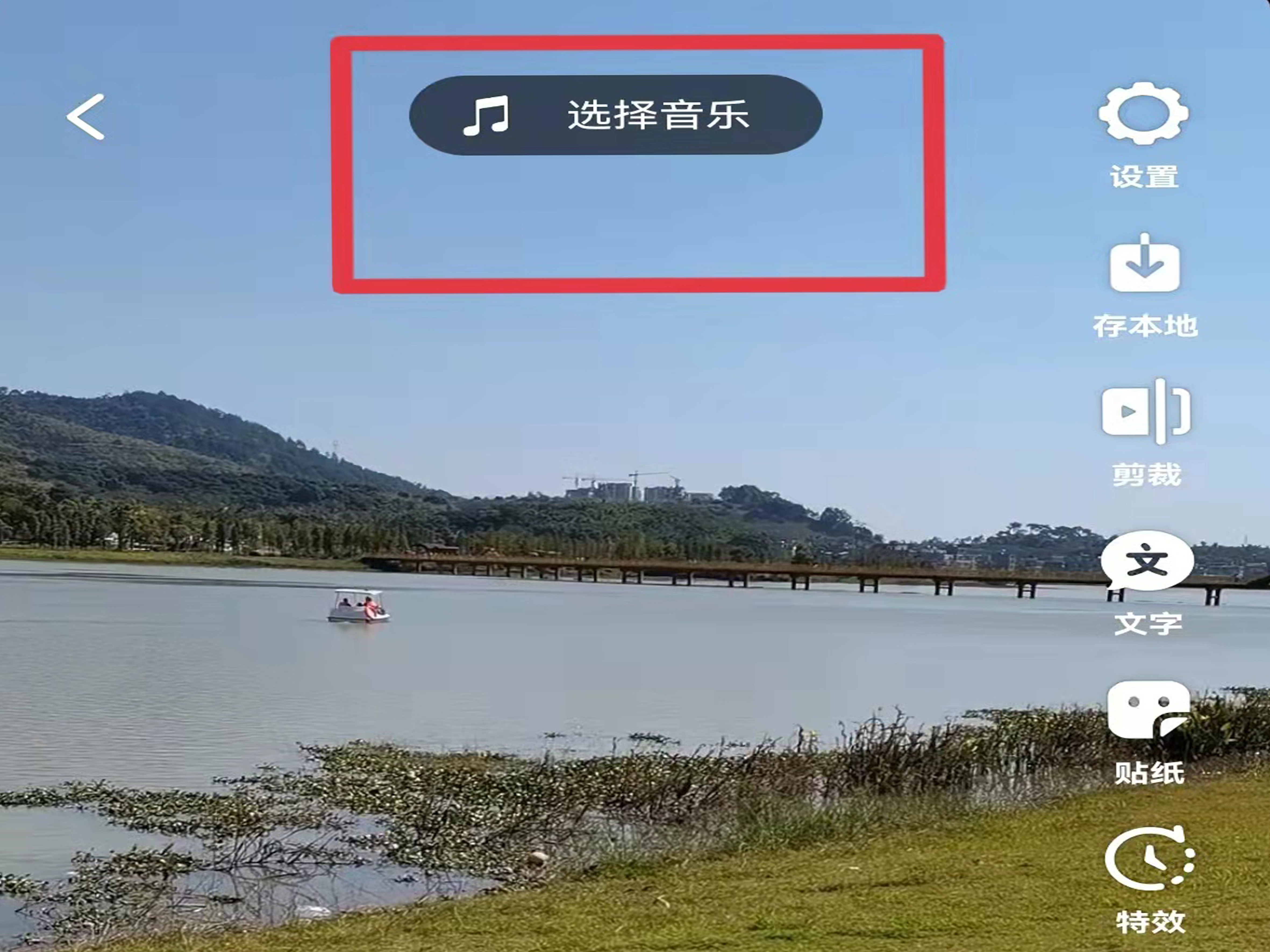 3、进入视频页面,点击上方的“选择音乐”,选取一首歌曲。