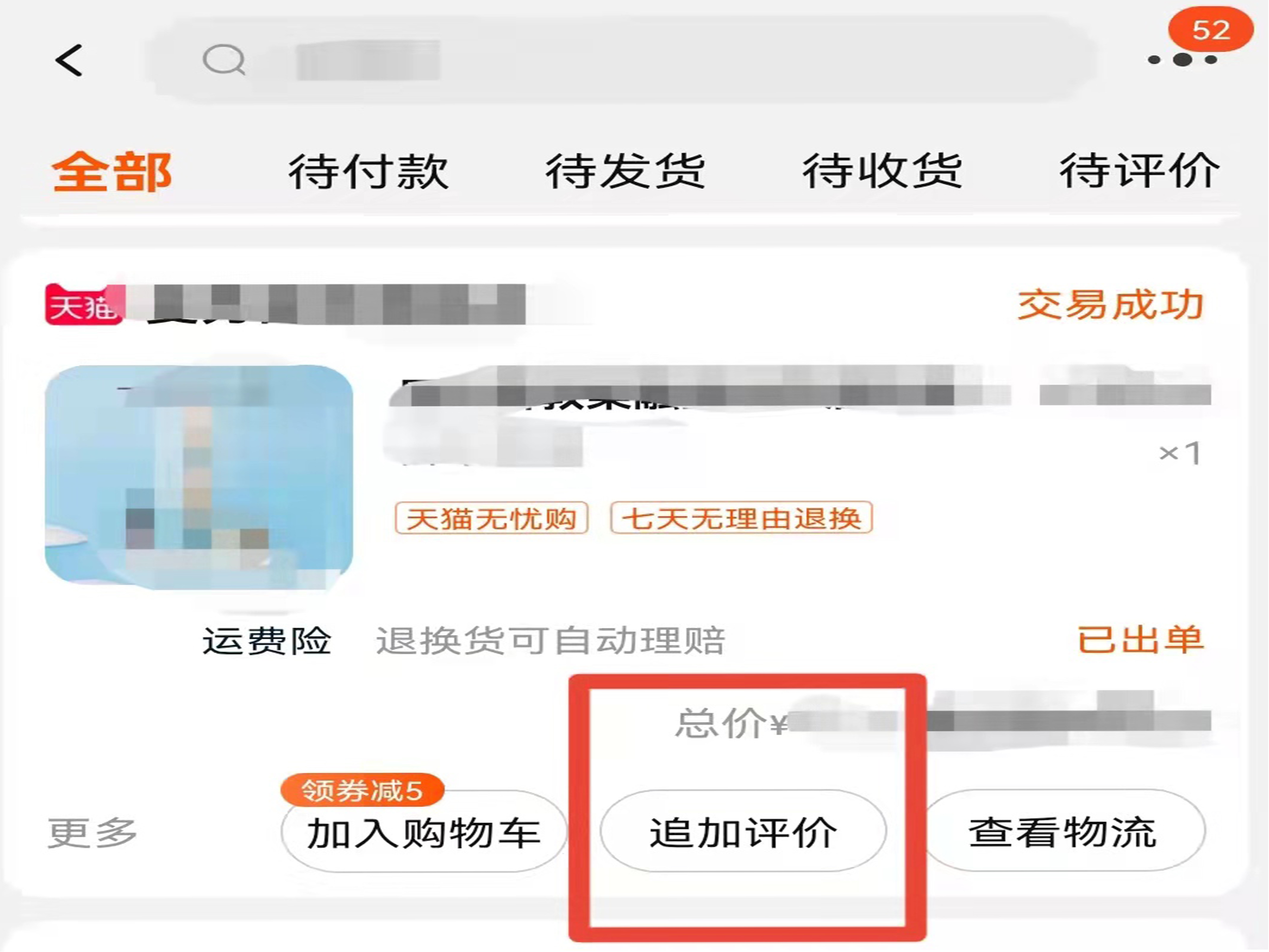 淘宝买家追加评论的操作方法如下:1、打开手机淘宝,进入“我的淘宝”页面。2、点击“我的订单”,选择需要进行追评的订单。3、点击订单“追加评价”选项。4、输入个人评价内容,点击“发表追评”即可完成。