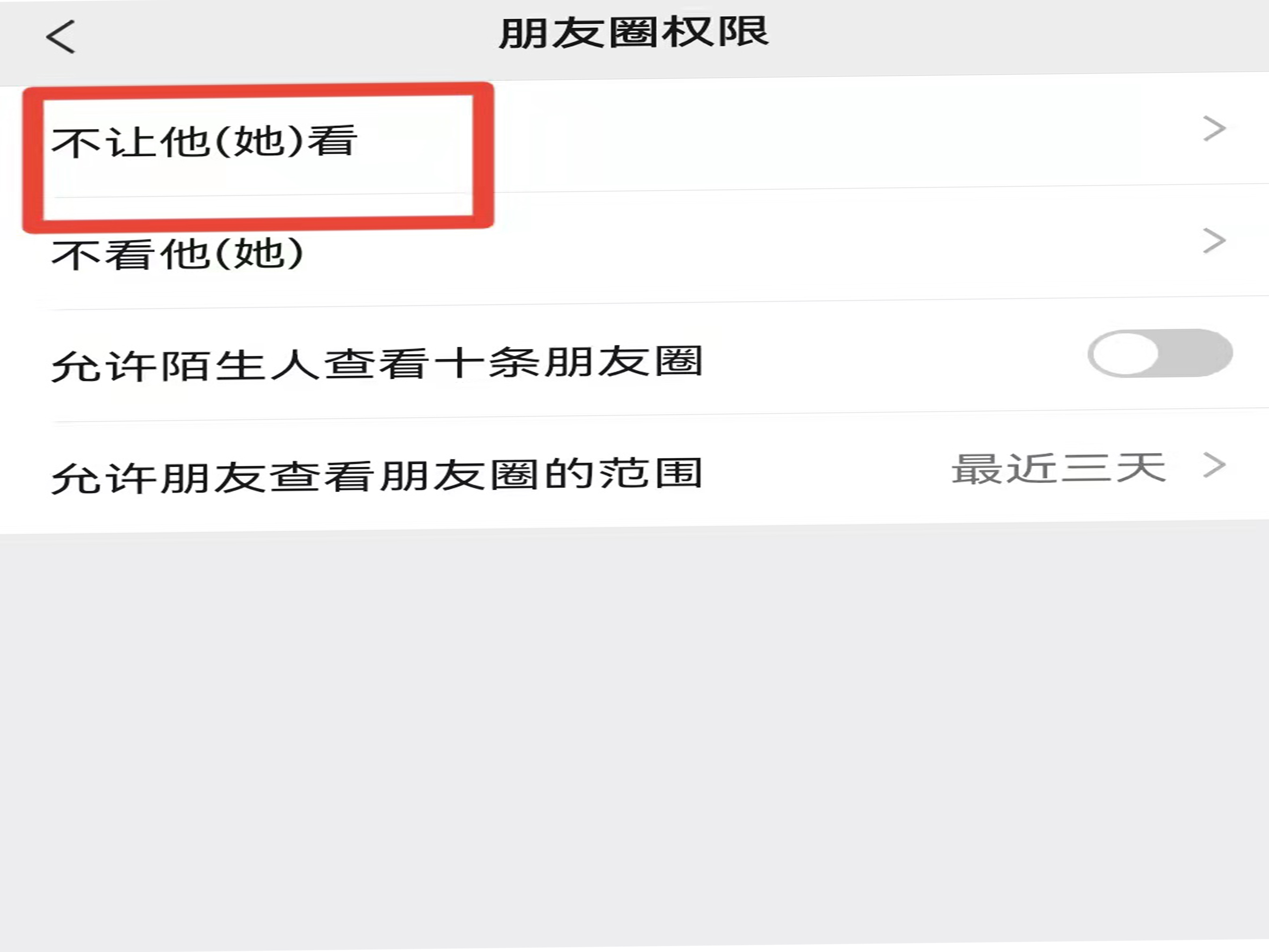 3、在朋友圈权限页面点击“不让他(她)看”,选择左下方的“添加”按钮。