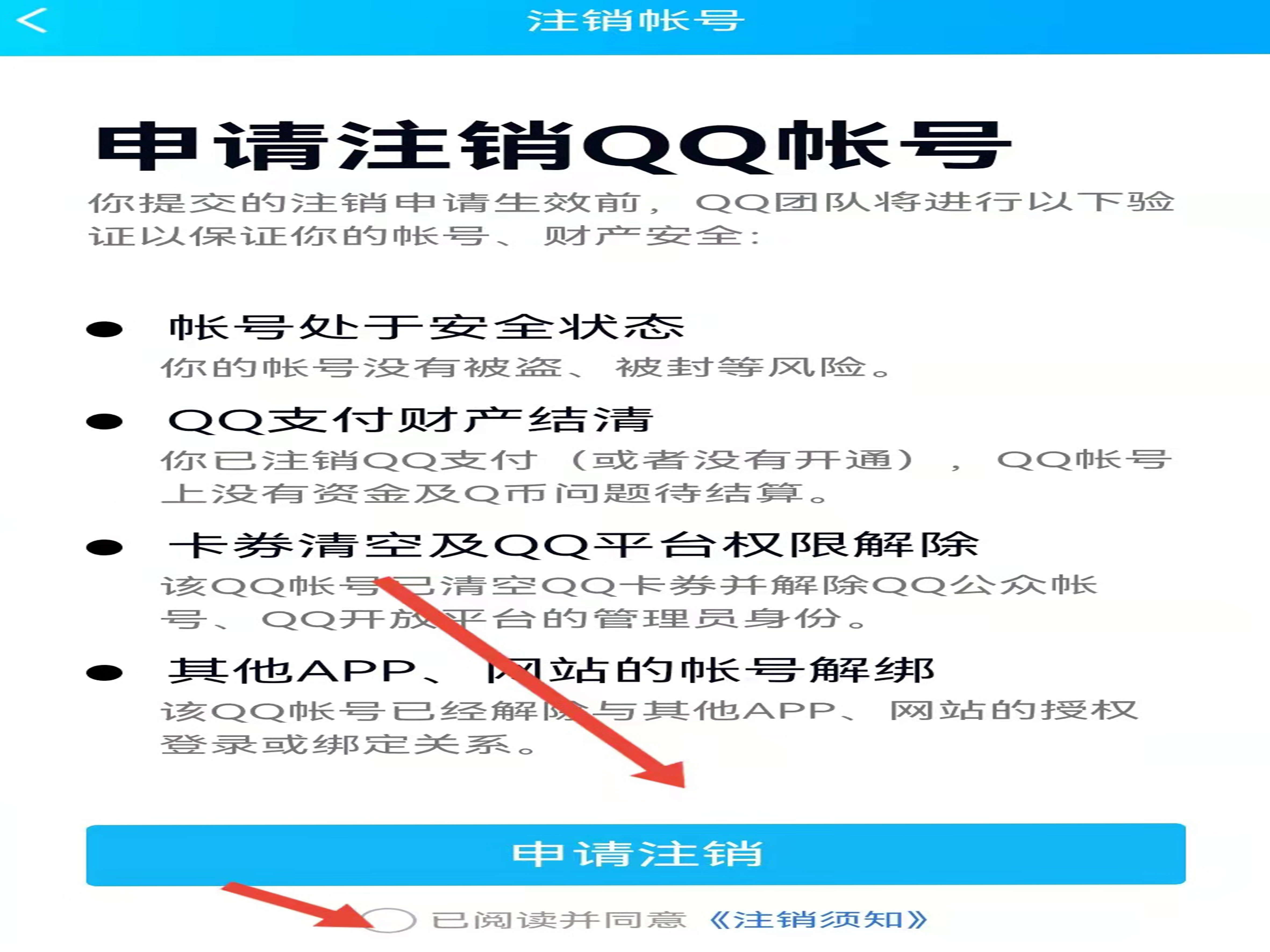 5、满足注销条件后,勾选“已阅读并同意”选项,点击“申请注销”即可。