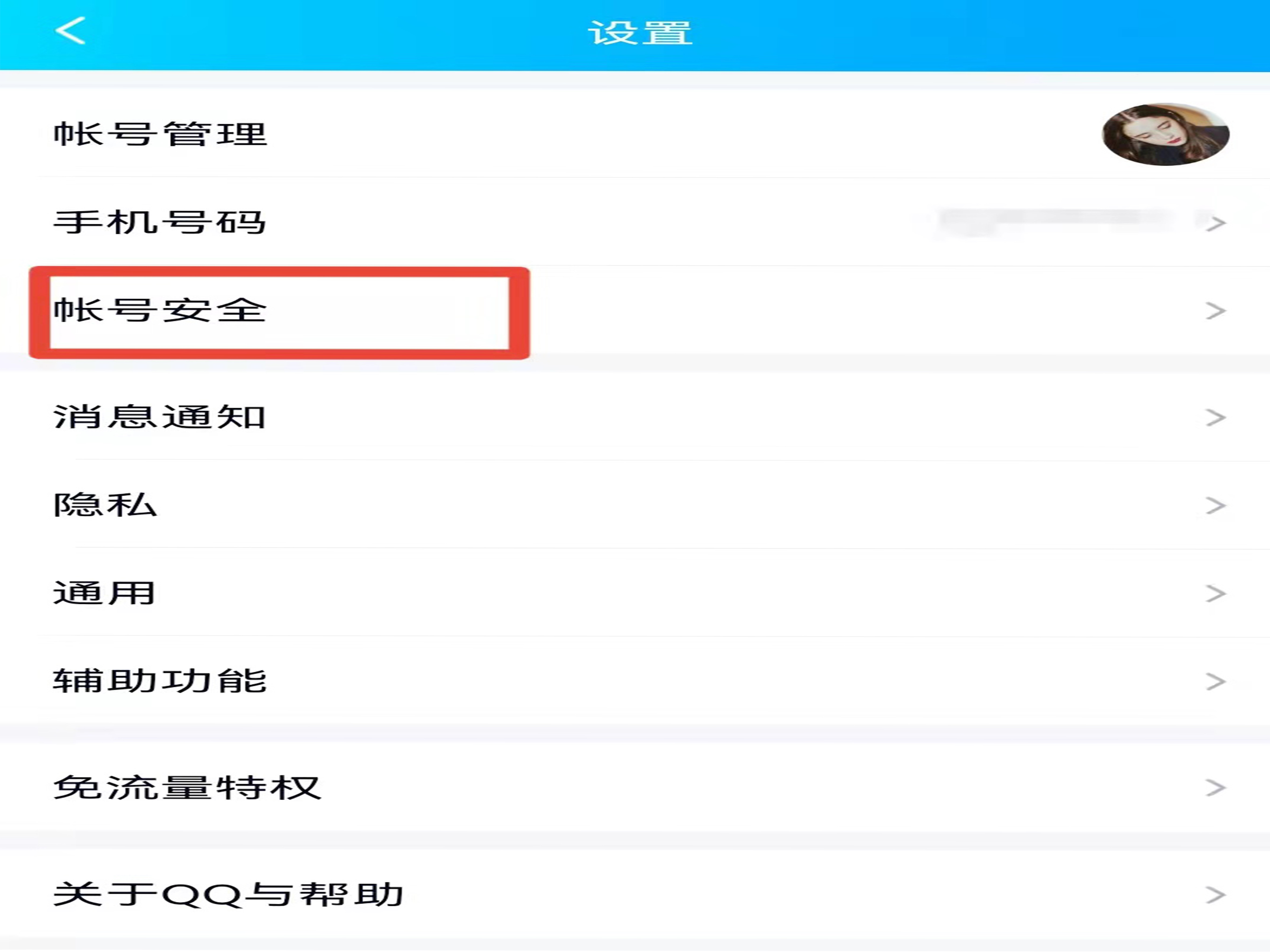 3、在设置界面点击“账号安全”,进入账号安全界面。