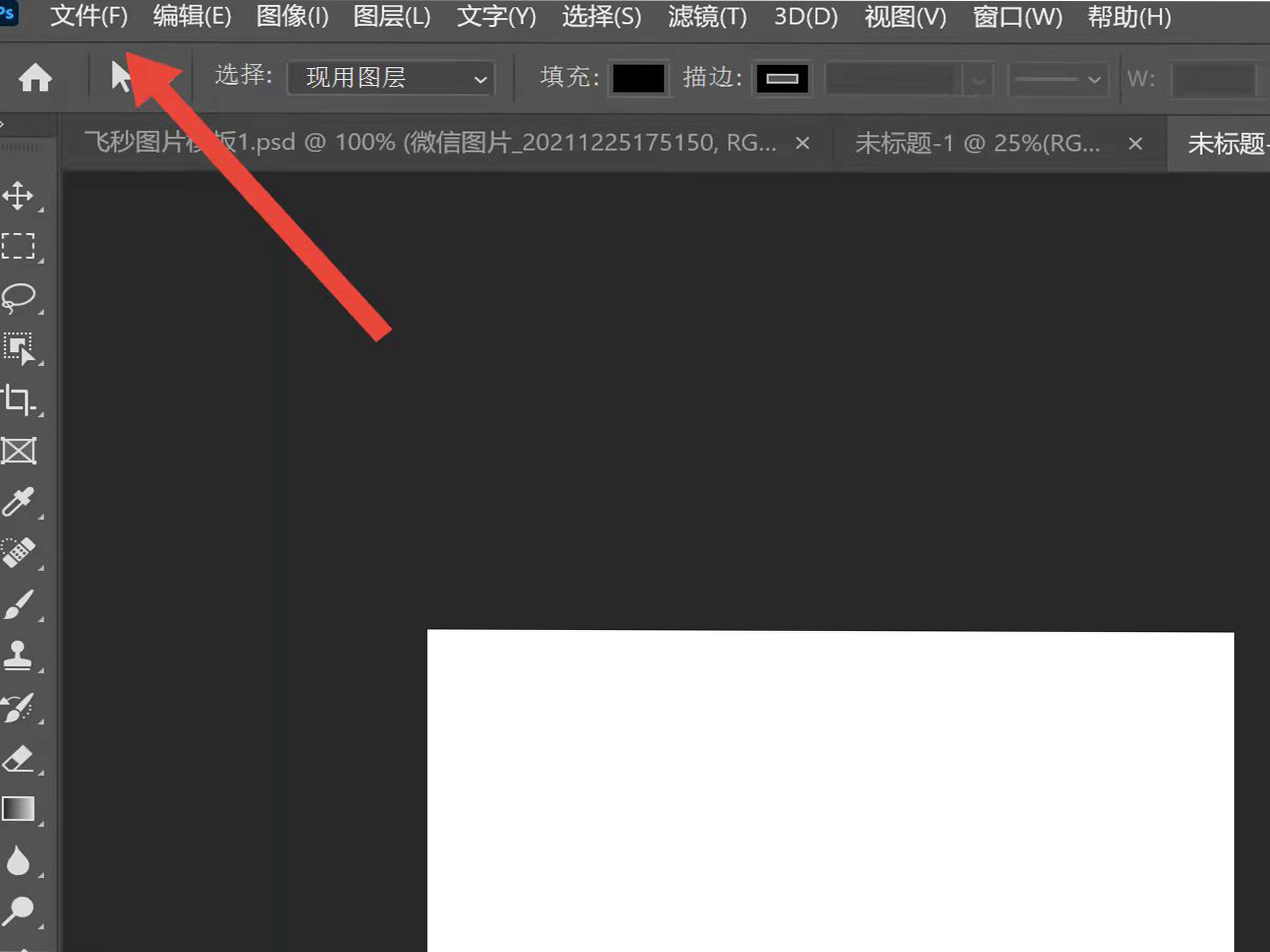 1、打开电脑端的Photoshop软件,点击左上角的“文件”。