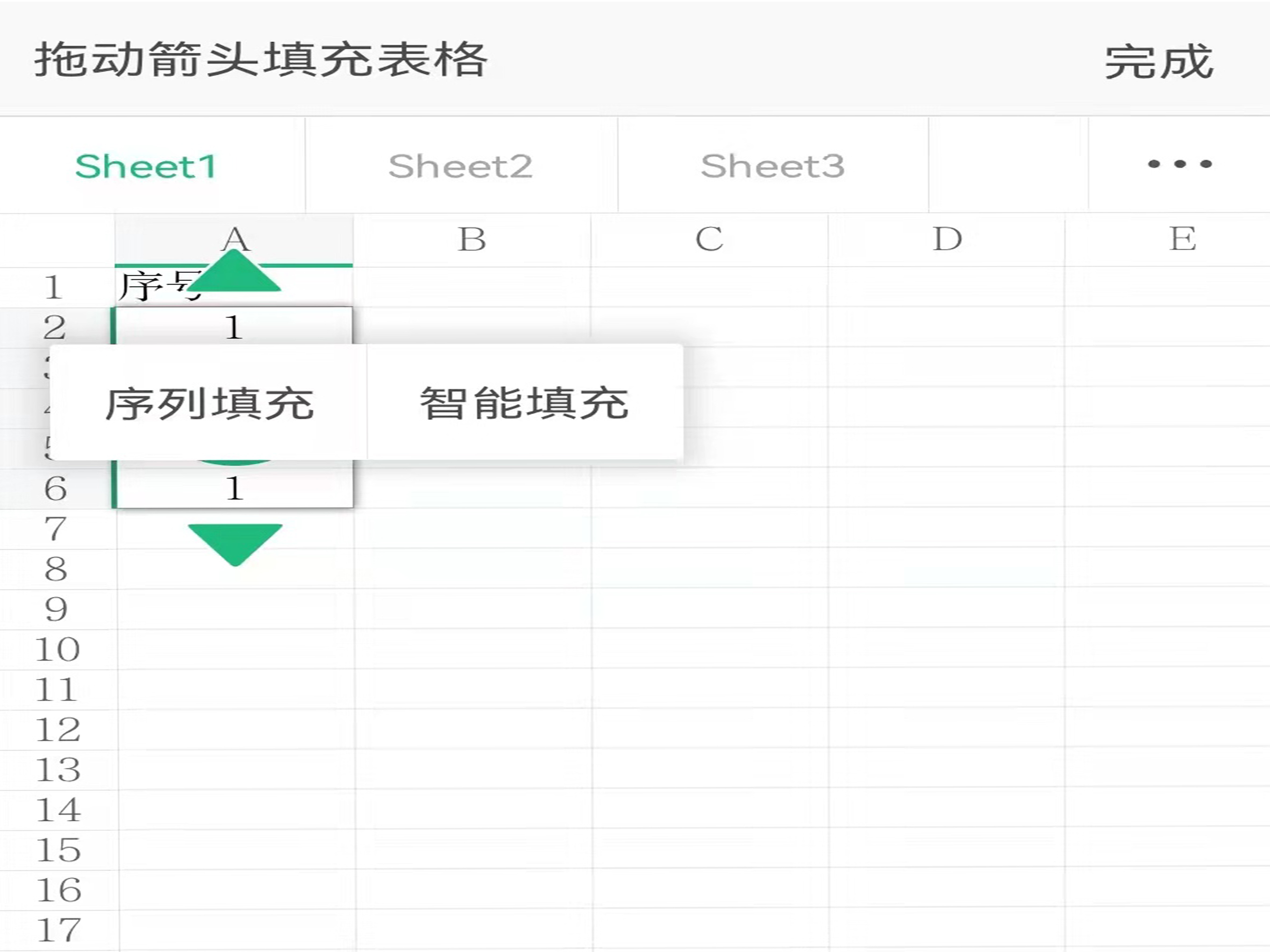 4、按照方框出现的箭头方向选择序号排列的方向,拖动填充栏。