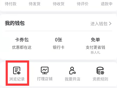 4、进入页面后,点击“浏览记录”,即可查看浏览过的店铺。