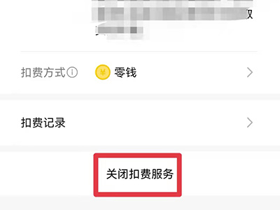 4、打开需要关闭的自动扣费项目,点击“关闭扣费服务”,完成关闭自动扣费。