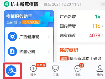 1、打开手机支付宝app,进入首页。