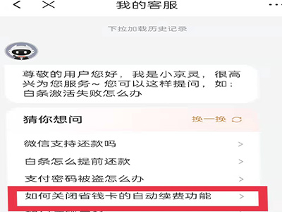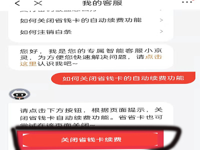 4、点击我的客服页面“如何关闭省钱卡的自动续费功能”。