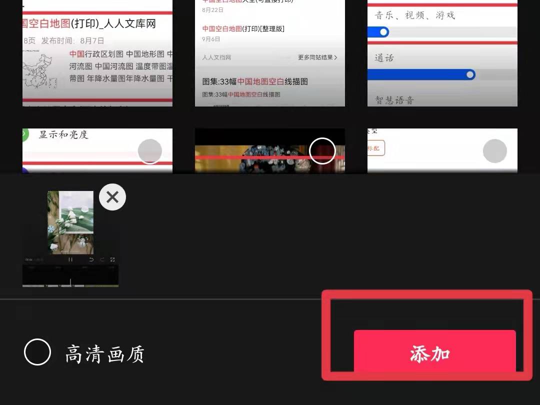 2、选择素材图片或视频,点击右下角的“添加”,进入创作操作界面。