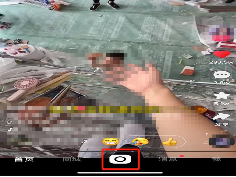 1、打开快手app,点击中间的相机标志,进入拍摄页面。