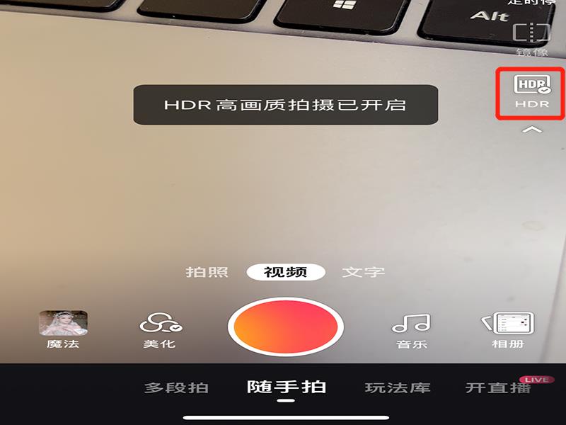 快手拍摄视频调成HDR的具体操作如下:1、打开快手app,点击中间的相机标志,进入拍摄页面。2、点击位于右侧一栏的下拉箭头,弹出拍摄功能区。3、找到并点击“HDR”,即可开启HDR高画质拍摄。