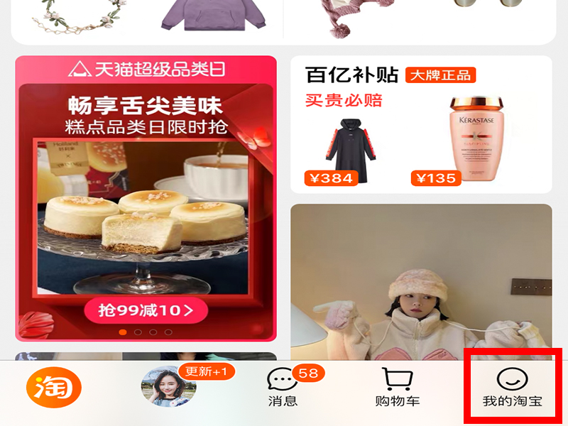 1、打开淘宝app,点击进入“我的淘宝”的界面。