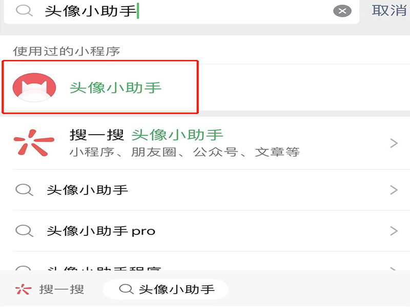 1、打开微信app,在搜索栏上输入头像小助手,点击进入头像小助手小程序。