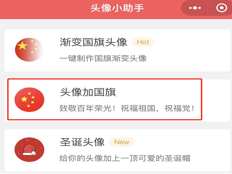 把头像上放个国旗的具体操作如下:1、打开微信app,在搜索栏上输入头像小助手,点击进入头像小助手小程序。2、在头像小助手小程序内,点击进入“头像加国旗”设置页面。3、在头像加国旗设置页面上,点击“保存”,即可成功把小国旗放在头像上。