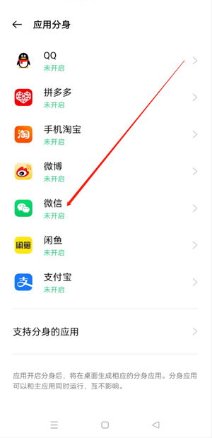 4、点击“开启应用分身”。