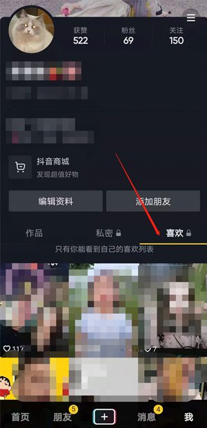 2、回到个人界面,点击“喜欢”,可看到自己浏览过的并且点击了喜欢的视频。