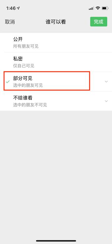 微信朋友圈设置部分人可见,其他人就不能看到了,只有你自己选择的部分人才能进行查看该朋友圈。操作步骤:1、发布朋友圈的时候,选择“谁可以看”。2、选择“部分可见”。3、指定可见的好友。
