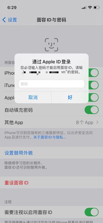 3、输入Apple ID登陆密码,启用面容ID,就可以跳过密码下载了。