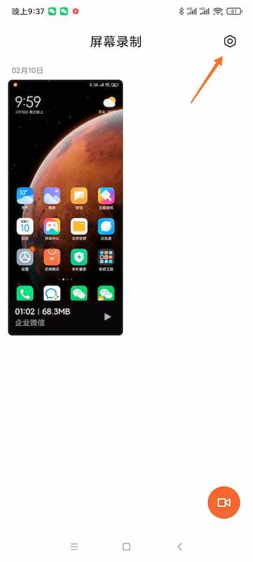 1、打开屏幕录制APP,点击右上角设置图标