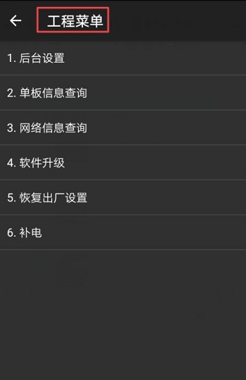 3、输入完成后,弹出“工程菜单”,我们就进入工程模式了。