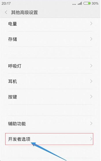 方法如下:1、点“设置”。2、选“关于手机”。3、连续点击“MIUI版本”,直至显示“您现在处于开发者模式”。4、返回“设置”,选“其他高级设置”。5、点“开发者选项”即可。