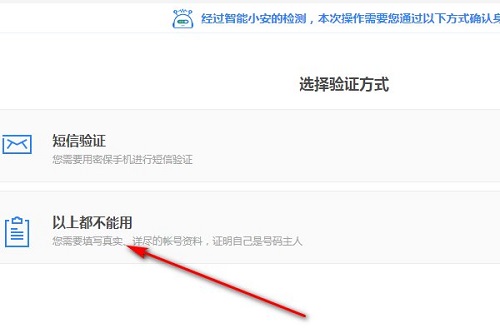 4、验证方式选择“以上都不能用”。