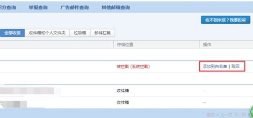 5、点击右方的“添加到白名单”,邮件就能成功被找回了。
