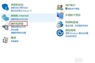 2、在控制面板里面,找到“硬件和声音”,双击打开。如图: