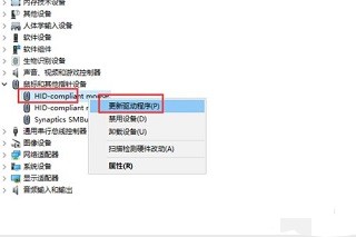 5、在“鼠标和其他指针设备”下面,单击其中一个设备,右键单击,选择“更新驱动程序”。如图: