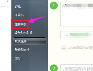 2、点击“控制面板”。