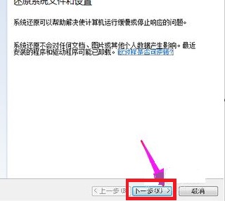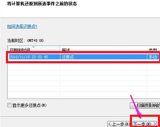 8、选择还原点,一般都是默认的初始的状态。点击“下一步”。