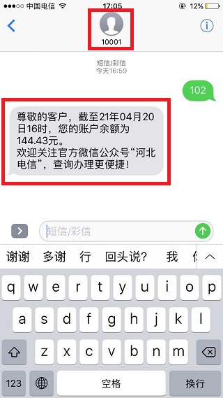 3、过一会儿“10001”就会发送短信过来,短信内容就是剩余话费。